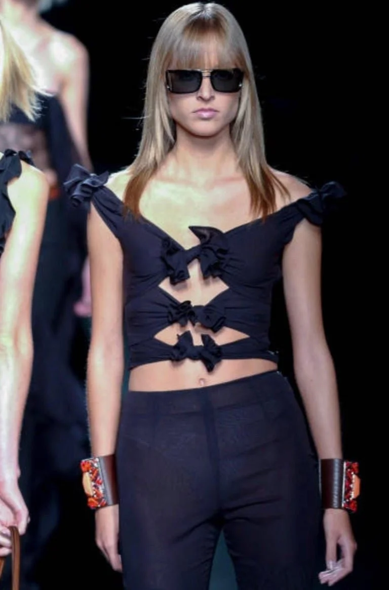 A stunning archival piece from Valentino’s Spring/Summer 2002 ready-to-wear collection, as seen on the runway and featured in the season’s Vogue edition.