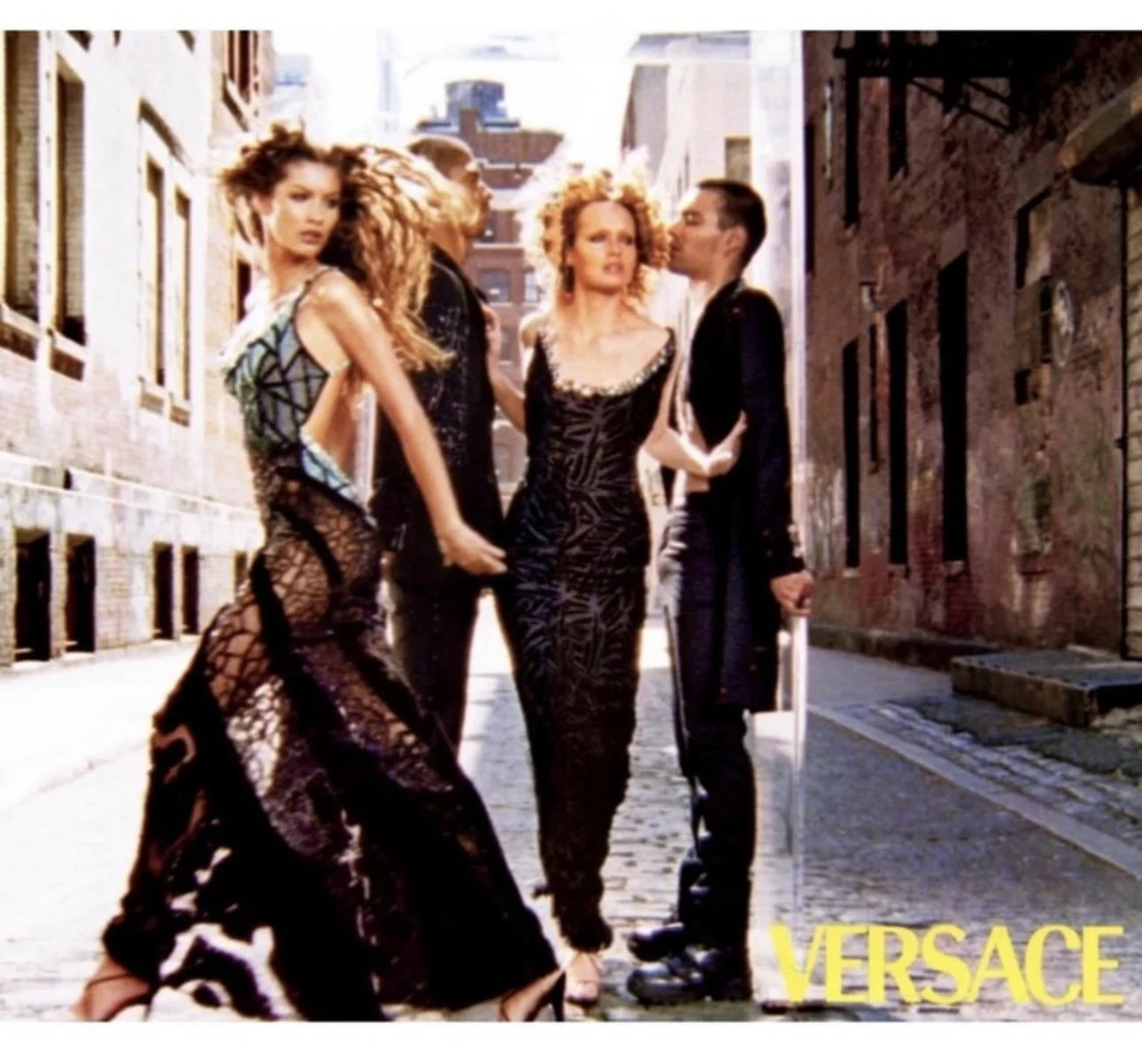 Presenting an elegant velvet-overlay skirt designed by Donatella for Gianni Versace Couture's Fall/Winter 1999 collection. This black velvet and turquoise chiffon combination was heavily featured in the season's runway collection and ad campaign. A high slit up the back of the skirt makes this Y2K gem unmistakably Versace.