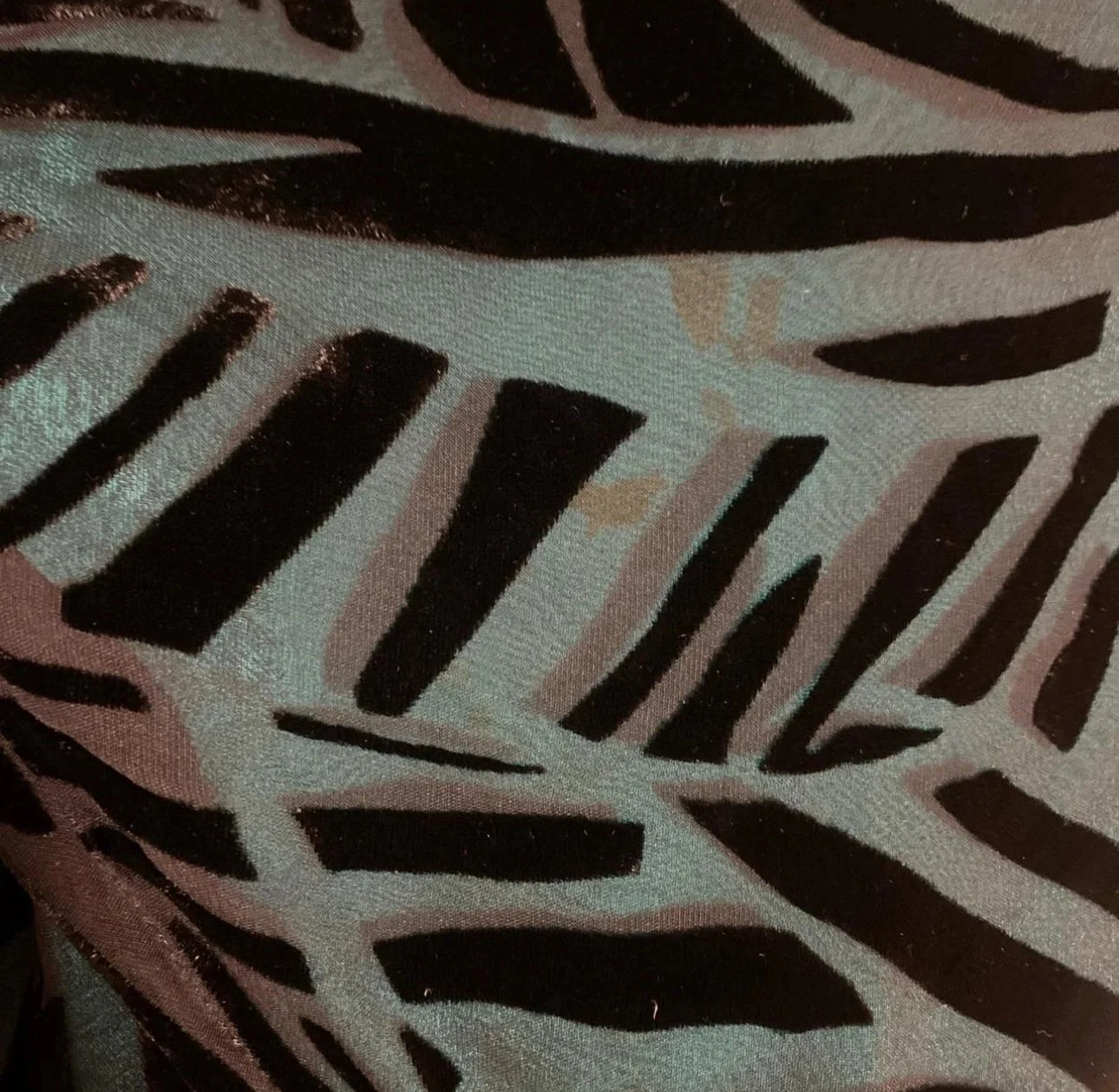 This stunning piece is in good vintage condition, however, it does have small inner stains in the lining. They cannot be perceived when wearing the piece due to the velvet print on the outside. The price has been adjusted to reflect condition ❤️