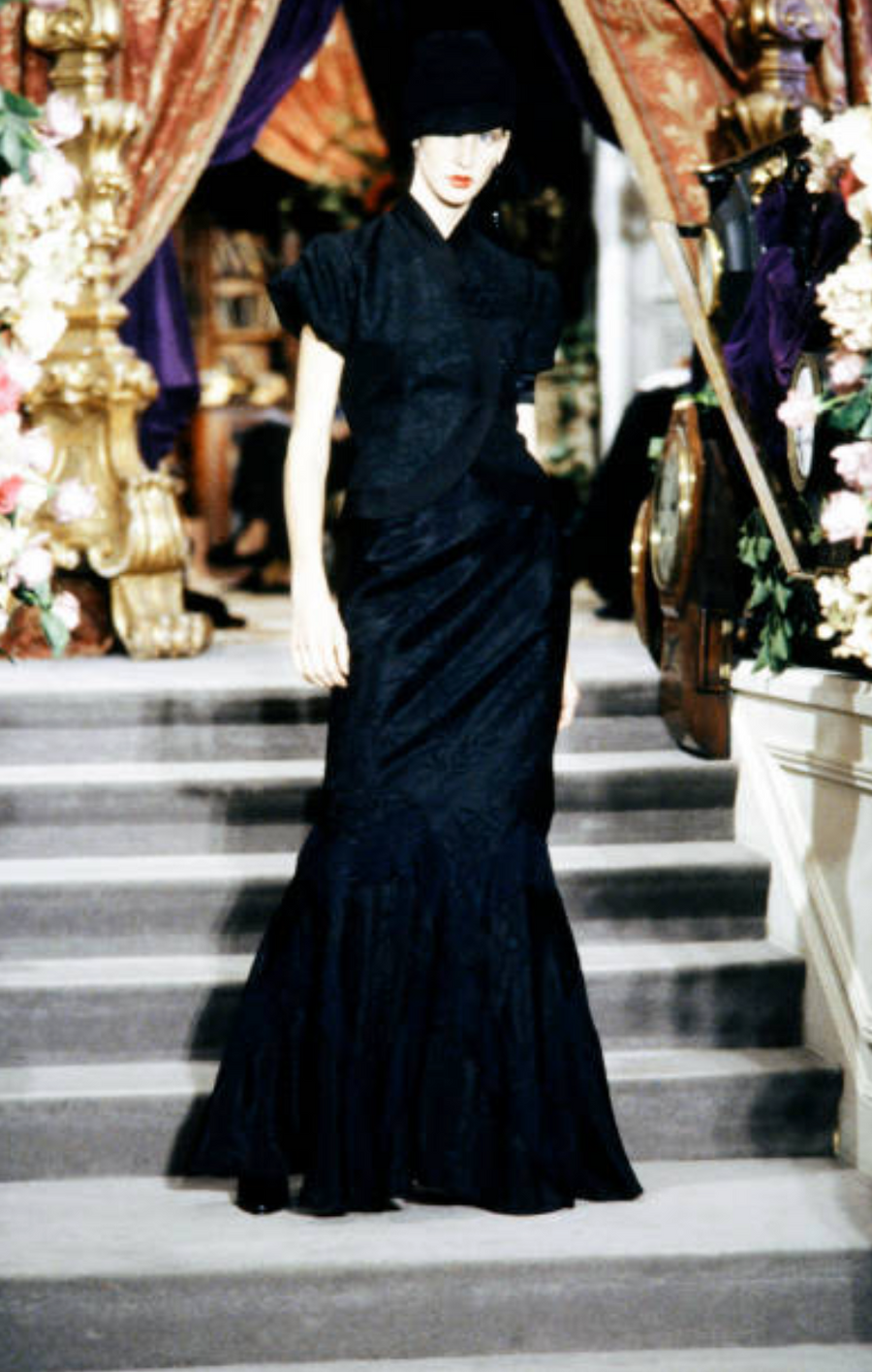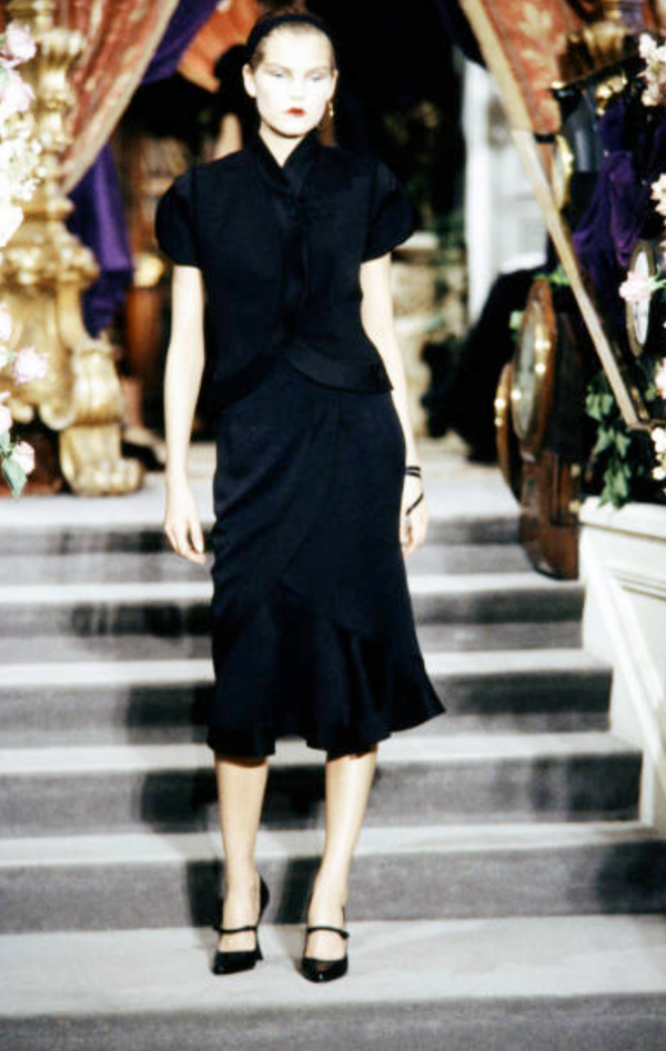 This dior set comes from one of the most storied collections of the Galliano-era Dior — Spring 1999 — for which, as noted in the Dior Catwalk book, "Galliano took a trip on the Trans-Siberian railway and drew inspiration from Russian avant-garde as well as the Chinese red army."
